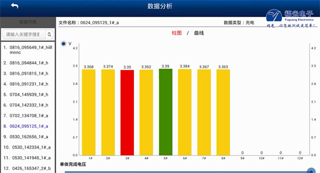 以柱(zhu)狀圖或(huo)曲線圖(tú)顯示測(cè)試過程(cheng)中各個(gè)電芯電(dian)壓随時(shí)間的⚽變(biàn)化過程(chéng)