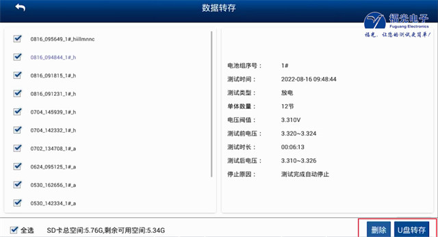 測試(shì)過程中(zhong)數據會(hui)自動保(bao)存到儀(yí)表内部(bu),支持測(ce)試曆史(shǐ)數據🌂查(chá)看、删除(chu)、U盤導出(chu)