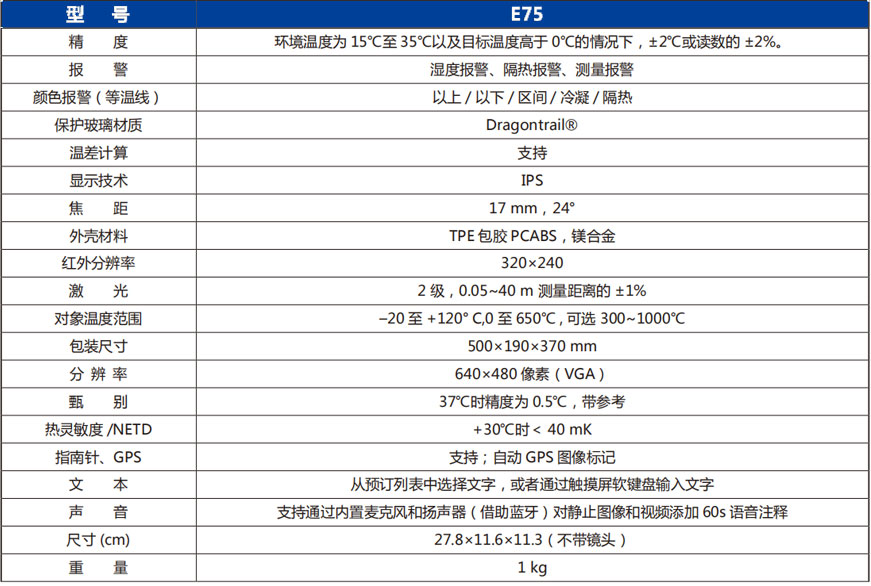 ● 其他高(gāo)端功能(néng):3個測溫(wen)點、3個方(fāng)框區域(yu)、等溫線(xiàn)、溫差、自(zi)動冷/熱(re)點追蹤(zōng),讓E系列(liè)熱像儀(yi)具備更(gèng)強實力(li)