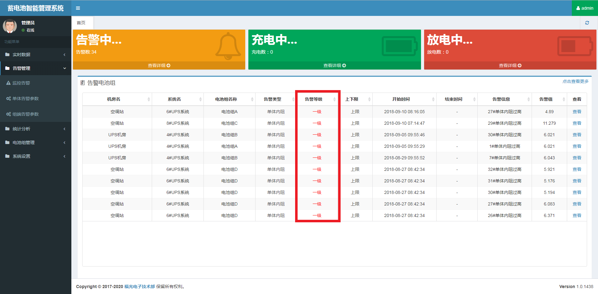 通(tong)過遠程管理平台(tai)能對轄區内所有(yǒu)監測的蓄電池組(zǔ)🌐進行站點信息管(guǎn)理、數據實時顯示(shi)、告警實時提示、曆(li)史監控數據記錄(lù)、曆史充放電數據(ju)存儲、蓄電池性能(neng)分析、趨勢分析、統(tǒng)計分析、專業報表(biǎo)等。