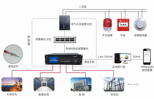 在(zai)機房設備及線(xian)路上配置FGT系列(lie)分布式光纖溫(wēn)度💰監🌍測🏃🏻系統💋,實(shí)✊現機房溫度實(shi)時監測,趨勢分(fen)析,事故💚的遠程(chéng)準确探🏒測、預🤩警(jing)、報警等