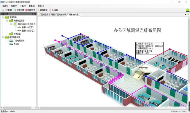 4.系統架構:形(xíng)成通信每層樓(lóu)各機房間及地(di)下隧道電纜的(de)多通✉️道完整分(fen)布式光纖監測(cè)系統,其中預留(liú)一條通道爲預(yu)留通道