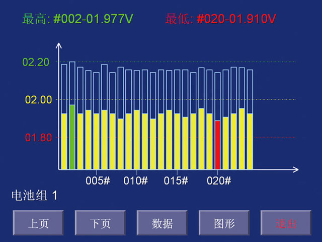 實時監測(cè)各單體數據,在(zai)主機屏幕上呈(cheng)現出各單體電(diàn)㊙️壓柱狀圖的變(bian)化軌迹,自動實(shí)時呈現出電壓(yā)最高🈲與最低的(de)單體。