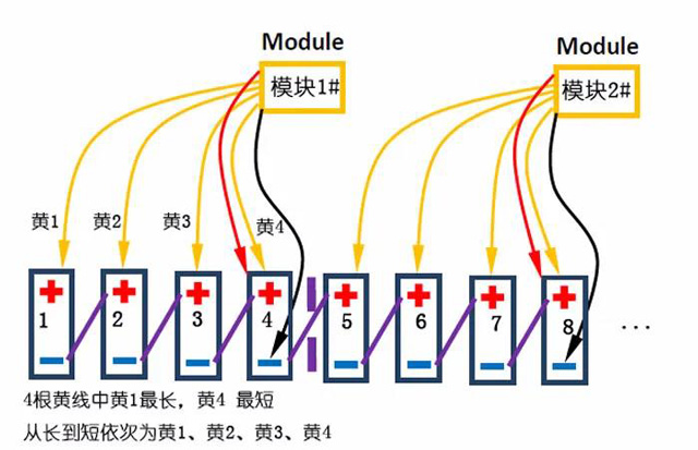 2.針對(dui)2V單體,可能出(chu)現電壓不滿(mǎn)足的情況,将(jiang)臨近4節♊單🤞體(tǐ),按照☎️4節單體(ti)法連接,重複(fú)的黃線不連(lián)接(紅黑線間(jian)4節單體)