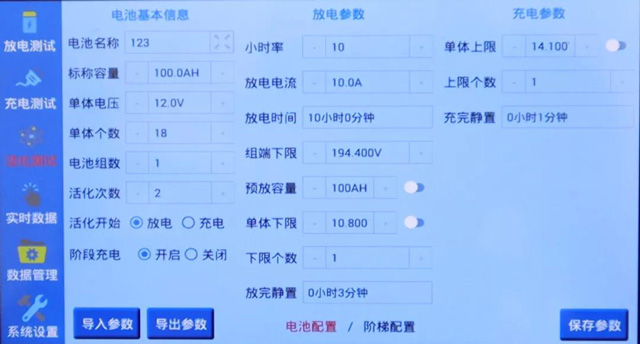 針對(dui)容量降低、性能(neng)下降的電池組(zu),可通過設置多(duo)次循♻️環充放電(dian)激活電池活性(xing),提升整組電池(chí)性能♉。
