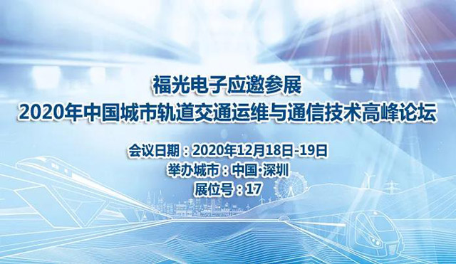 2020年12月18-19日,2020年中國(guó)城市軌道交通(tong)運維與通信技(ji)術高峰論壇将(jiāng)在深圳召開,福(fu)州福光電子有(yǒu)限公司應邀參(can)展本次論壇。