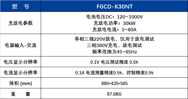 FGCD-K30NT可對待運輸(shu)電池整包進行(hang)放電,降低SOC,達到(dao)整包運輸标準(zhun);可對到達電池(chi)包可進行充電(dian)工作,進行項目(mù)SOC容量标定