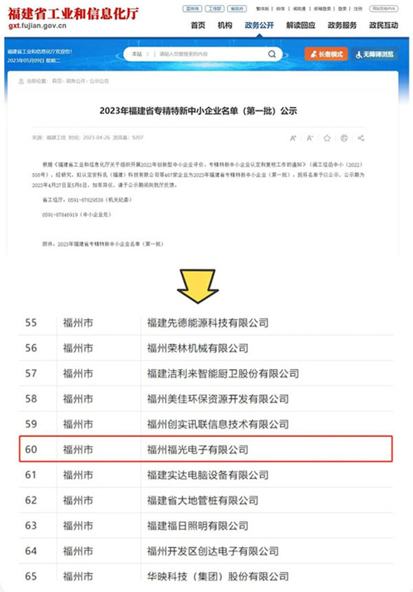 喜報(bao)|福光電子(zi)被評定爲(wei)福建省專(zhuān)精特新企(qǐ)業!
