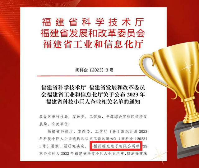 喜報(bao)|福光電子獲評(píng)福建省科技小(xiǎo)巨人企業