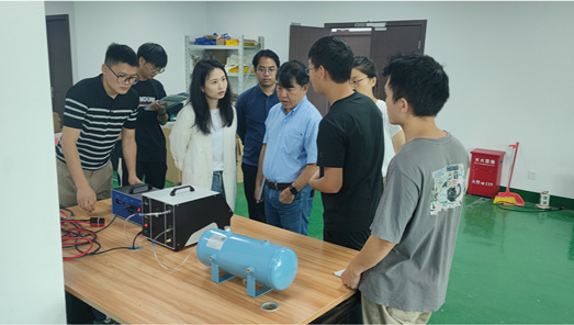 在生産(chǎn)研發中(zhōng)心和工(gong)作流程(cheng)的參觀(guān)中,福 光電子(zi)團隊向(xiang)泰國客(kè)戶介紹(shào)了多種(zhong)不同的(de)新能 源電池(chi)檢測設(she)備,不僅(jin)對産品(pin)特點和(he)參數進(jìn)行 講(jiang)解,還逐(zhú)一進行(hang)現場接(jie)線操作(zuò),讓客戶(hu)更深 入地了(le)解了産(chǎn)品的細(xi)節與特(tè)點。客戶(hù)也對福(fu)光 良(liang)好的工(gong)作環境(jing)、有序的(de)生産流(liu)程,嚴格(gé)的質 量控制(zhi)留下了(le)深刻的(de)印象。