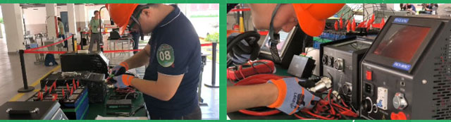 ②福(fu)光技術講解(jiě)人員現場演(yǎn)示動力電池(chí)維修設備