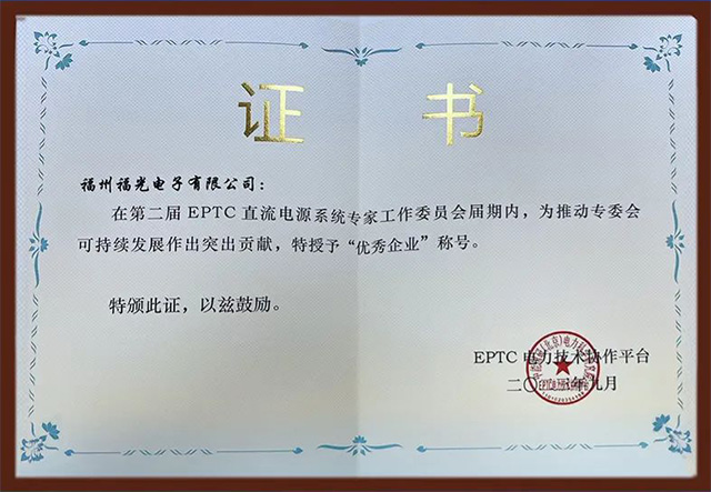 福光(guāng)電子獲評(píng)第二屆直(zhí)流電源系(xi)統專家工(gong)作委😘員會(huì)優🈚秀企業(yè)