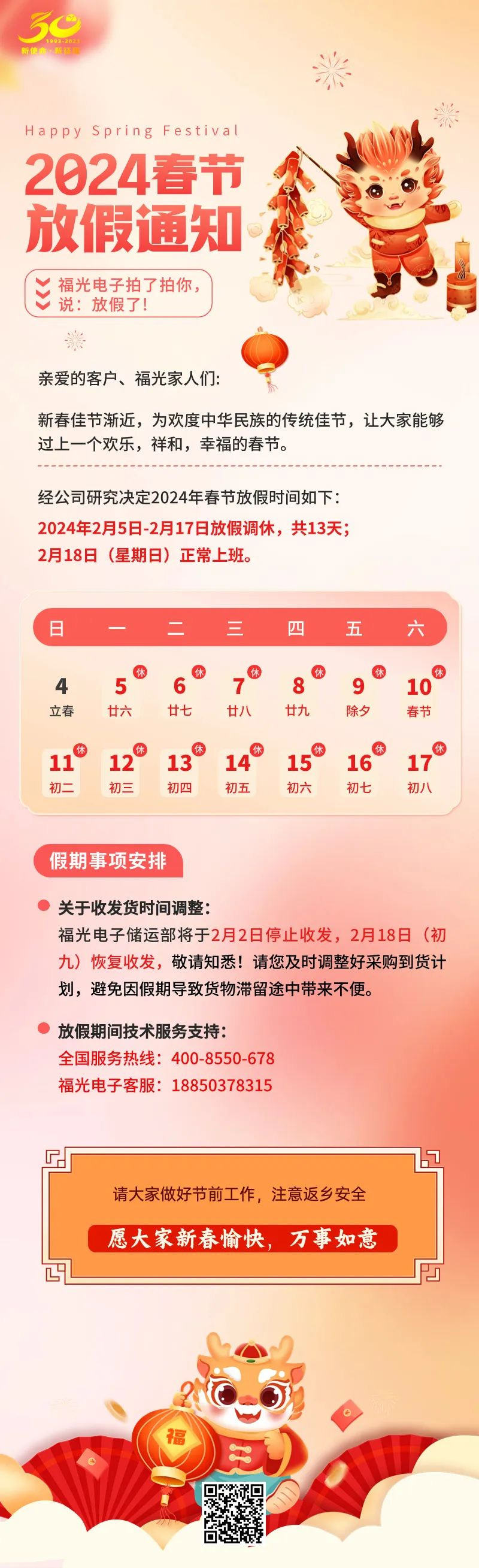 放假(jiǎ)通知丨(shù)福光電(diàn)子春節(jie)放假安(an)排