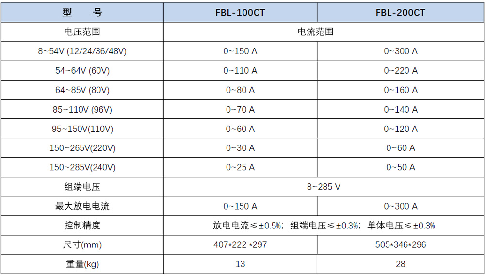 ● 寬電(diàn)壓範圍: 支持(chi)不同電壓等(deng)級(12-240V)電池組放(fàng)電測試