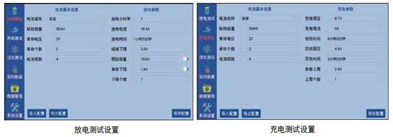 ● 參數智(zhì)能設置 :采依(yī)據蓄電池充(chōng)電、放電的維(wéi)護規程,儀表(biao)内置參數自(zì)動關聯,簡化(huà)用戶使用過(guo)程中的參數(shu)設置,提高效(xiao)率
