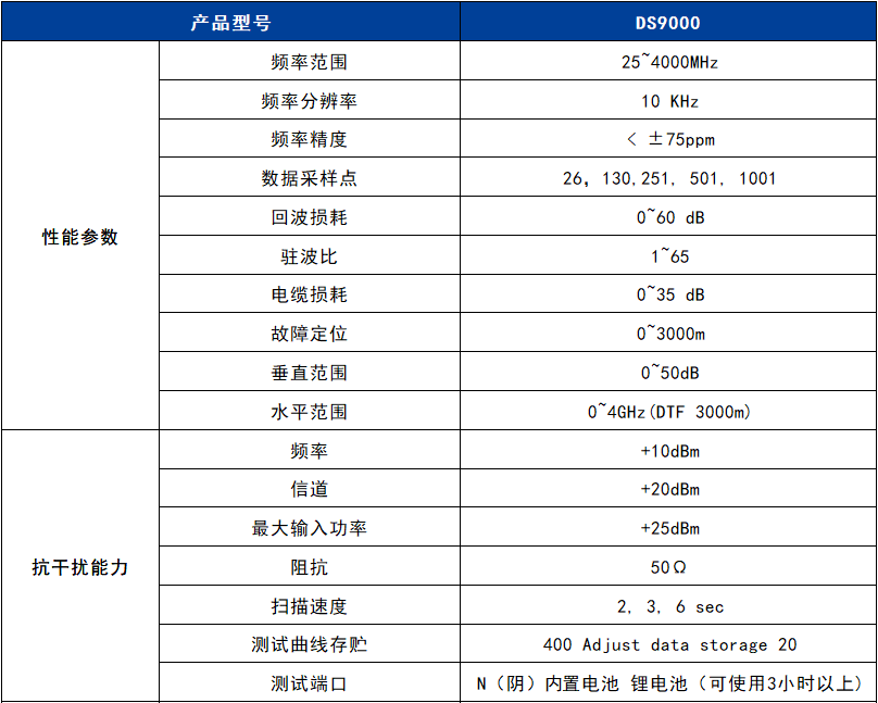 DS9000天饋線測試儀(yí)測試頻率範圍(wéi)爲5~4000兆赫茲,主要(yao)用于各種通信(xin)🍓基站天饋線系(xi)統的測試。包括(kuo)集群、GSM、PCS/DCS、CDMA、GPRS、WCDMA、CDMA2000、TD-SCDMA、LTE及尋呼系(xì)統等,能快速評(píng)估傳輸線和天(tian)線系統的狀況(kuàng),提高運行基站(zhàn)的維護✂️效率,并(bìng)且加快新基站(zhàn)所需要的安裝(zhuāng)🚶調試時間。