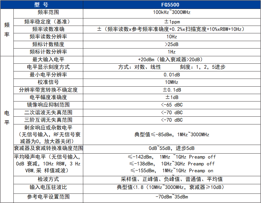 FG5500頻譜分(fen)析儀是(shi)一款多(duo)功能、高(gāo)集成度(du)的測試(shì)儀器,便(biàn)于運輸(shu)和攜 帶(dài)。除了頻(pín)譜分析(xī)功能之(zhī)外,還配(pèi)備功率(lü)測試♻️、鄰(lín)道功率(lǜ)、占用帶(dai)寬、幹 擾(rǎo)測試、跟(gēn)蹤源和(hé)💋GPS等功能(néng)。滿足您(nín)對頻譜(pu)測試分(fen)析全面(mian)需要。