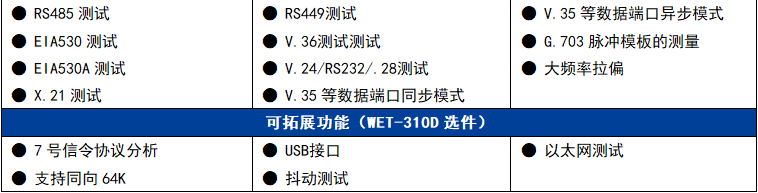 新推出的系列(liè)2M及數據鏈路綜(zōng)合測試儀可用(yòng)于測量與分析(xi)傳統E1傳輸系統(tǒng)的性能參數并(bìng)處理各種👌故障(zhang)。它們👌集誤碼測(cè)試、幀✏️結構分析(xī)、時隙分析、信念(nian)測試、信🌂号分析(xī)😄、告警分析、PCM仿真(zhen)等多種功能于(yu)一體。WET-310D還擁有更(gèng)豐富的功能及(ji)選件功能。